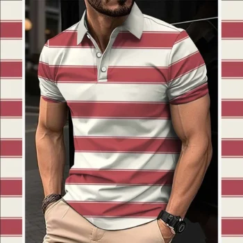 Imported 3D Stripe Printed Style Half-Sleeve Polo Summer Tshirt. MS3DP-102
