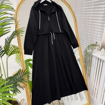 Turkish Drop Shoulder Pocket Style Long Winter Hoodie