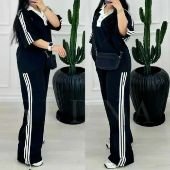 Contrast Collar 3-Stripe Style Western 2-Pcs Summer Tracksuit For Her. WSTS-06