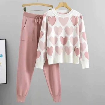 Heart Printed Pearls Work Premium Quality Winter 2-Pcs Tracksuit For Her. WWTS-10