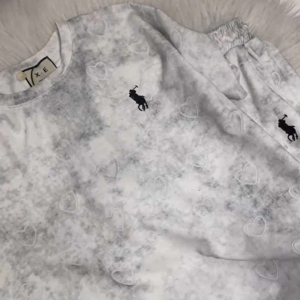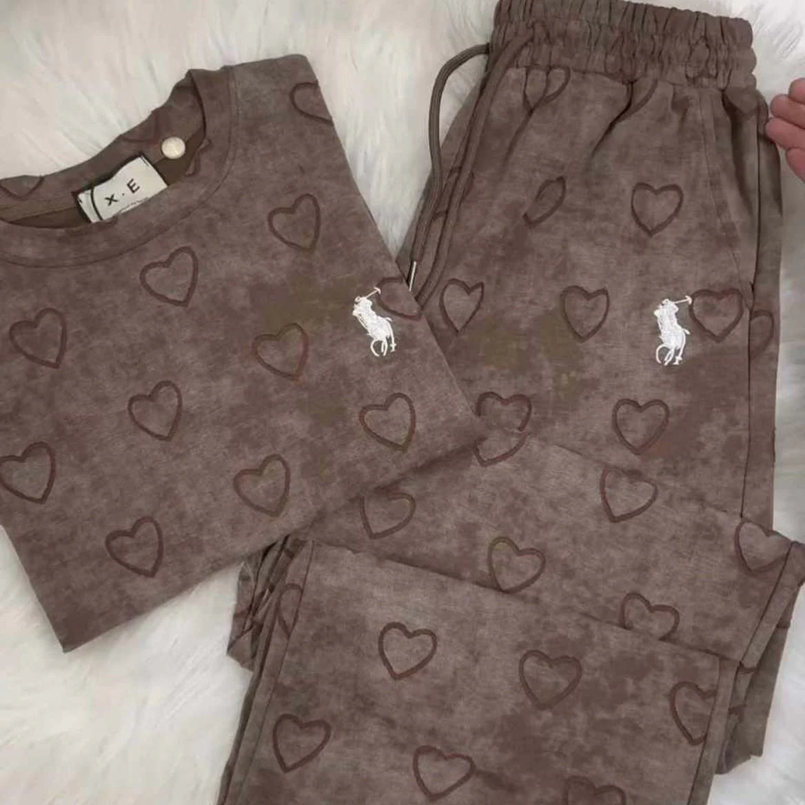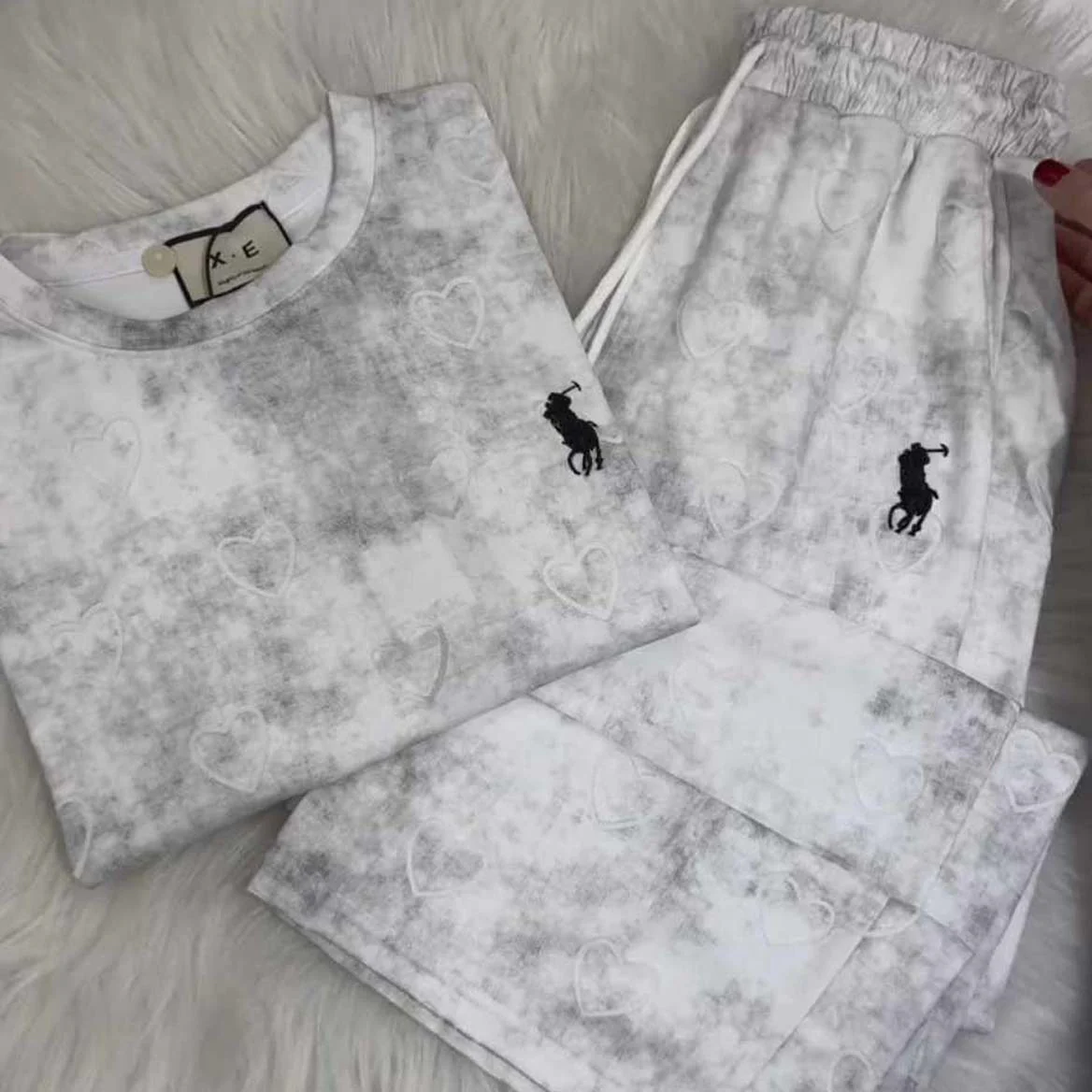 Heart Textured Horse Logo Printed Style Western 2-Pcs Summer Tracksuit For Her. WSTS-08