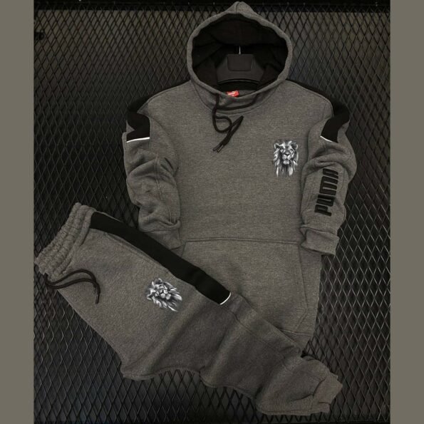 Lion Arm Printed Zipper Style 2-Pcs Winter Track-suit D-3
