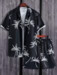 Zayra Men’s Coconut Trees Print Shirt Shorts Set Trendy Casual 2 Pcs Outfits